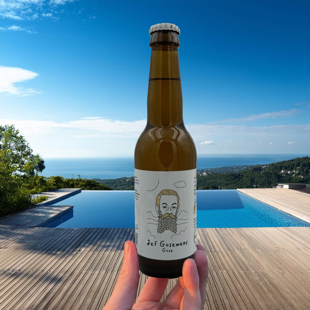 Jef Gosemans is a fresh, easy-drinking beer, with a slightly sour and salty touch and aromas of stone fruit.