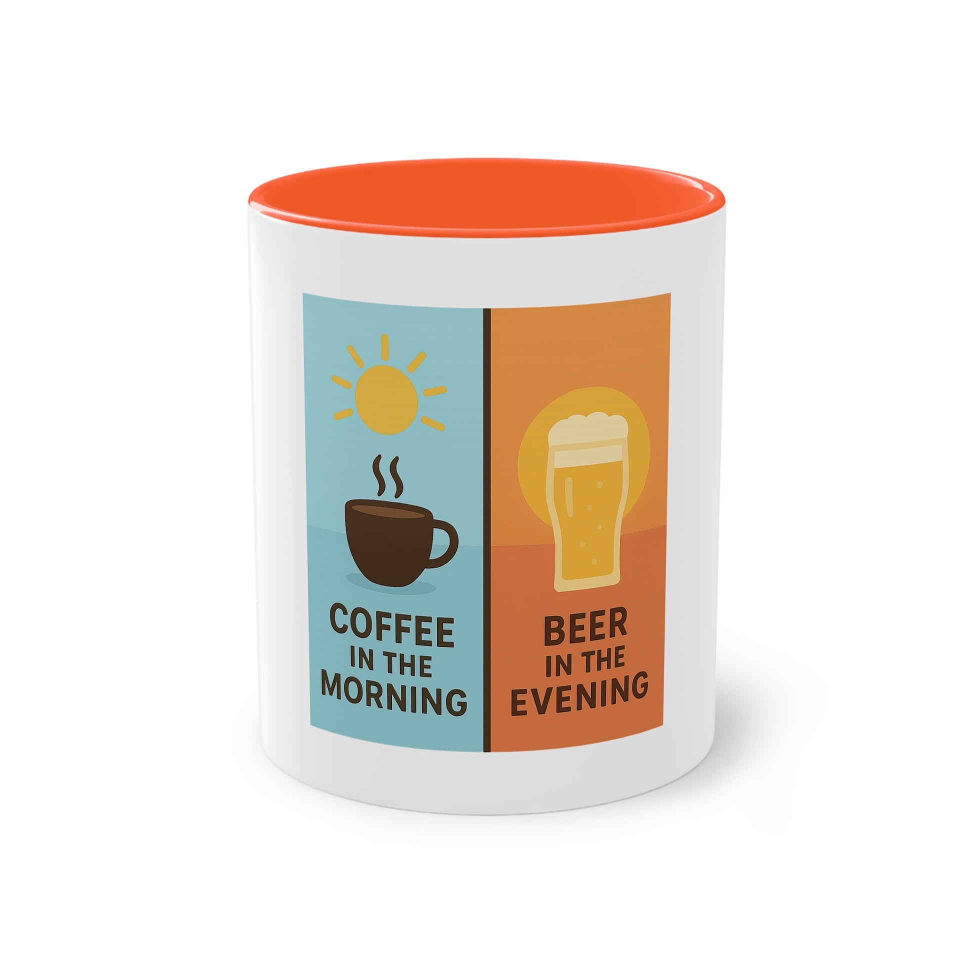 Tweekleurige koffietas: Koffie in de ochtend, bier in de avond.